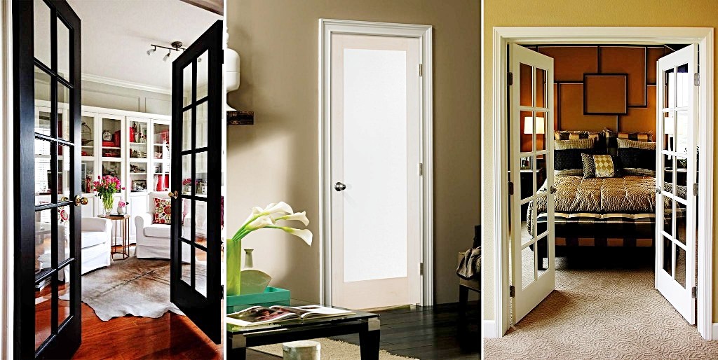 Display in order: #1 Clear 10-lite French Doors - #2 Reflection Mirror Door - #3 Clear 15-lite French Doors