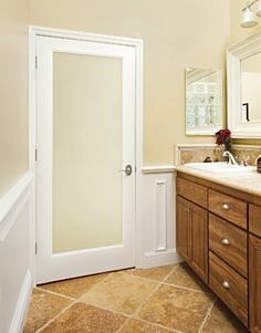 1-Lite White Laminate Glass Door Features laminated glass for light filtration and privacy. Great for bathroom or office.
