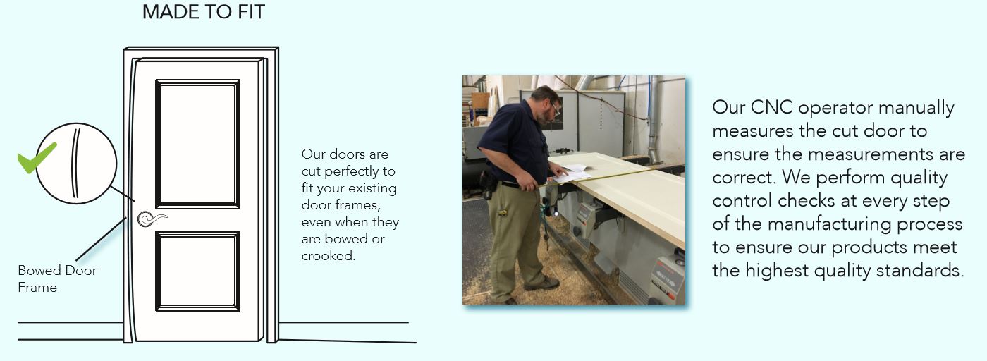 Because each door is made specifically for its location, the final result provides a more precise fit, improved appearance, and a smoother installation compared to standard off-the-shelf doors.