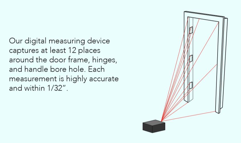 Measurements are digitally captured to ensure each door is custom manufactured to match the exact dimensions of your existing openings for a precise fit and professional installation.